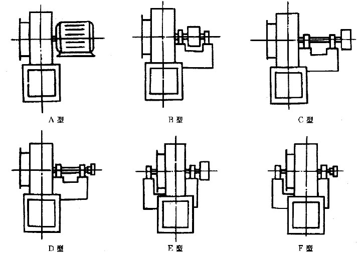 3、皮帶傳動。皮帶傳動顧名思義就是通過皮帶與皮帶輪來驅動風機的運轉。皮帶傳動式由于皮帶輪位置的不同又可分為4種形式